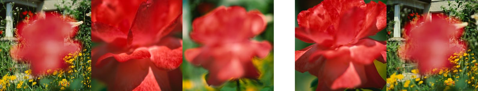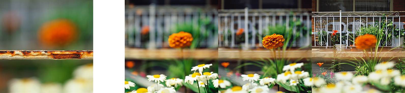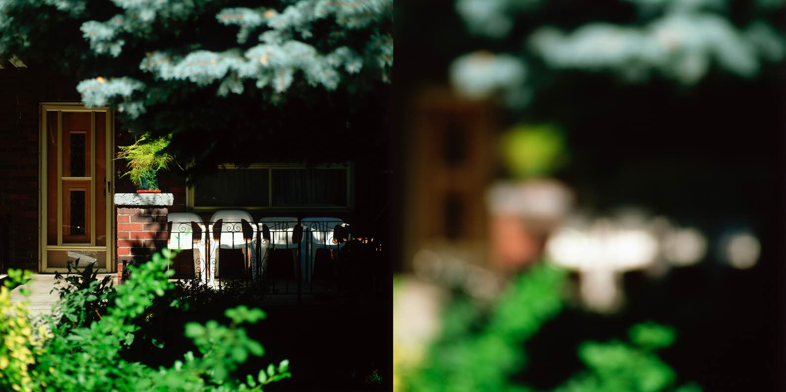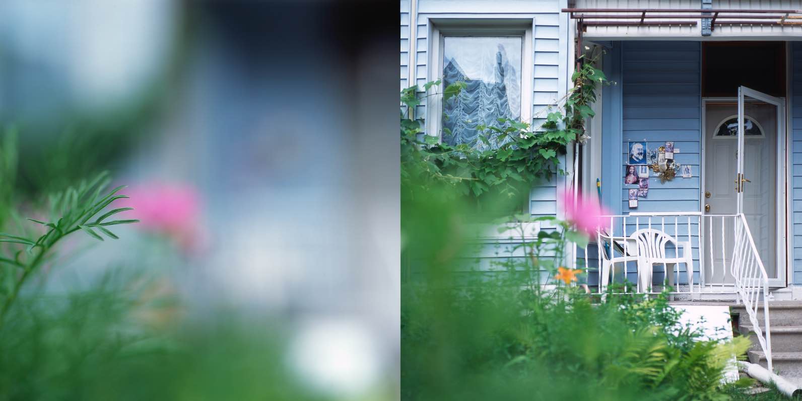 With Depiction, I have continued to explore the relationship between photographic depiction and visual perception. In this series, depth of field is used to investigate the fragmented nature of human vision, and the artifice of pictorial construction. Working over several summers in my Toronto neighbourhood of Little Italy, I photographed domestic gardens and house facades. The images were shot with a single stationery camera that captured multiple views as shallow focal layers, from the immediate foreground to infinity. Individual frames were then composed in filmstrip-like sequences of varying lengths in which the foreground, mid-ground and background appear together as individual components of the same pictorial field. Elements of each scene move in and out of focus, revealing the picture’s composite layers.